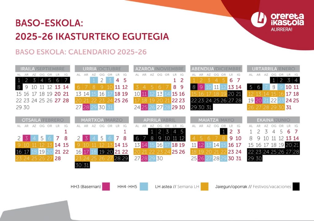 - Familias de HH: el día que las y los niños vayan a la baso eskola, quienes no se quedan en «zaintza» deben acudir a la parada de autobús de Lino (HH4-HH5)/Tulle (HH3) para las 09:00 horas. A la vuelta se les recogerá en el lugar habitual (en las sesiones de todo el día también).