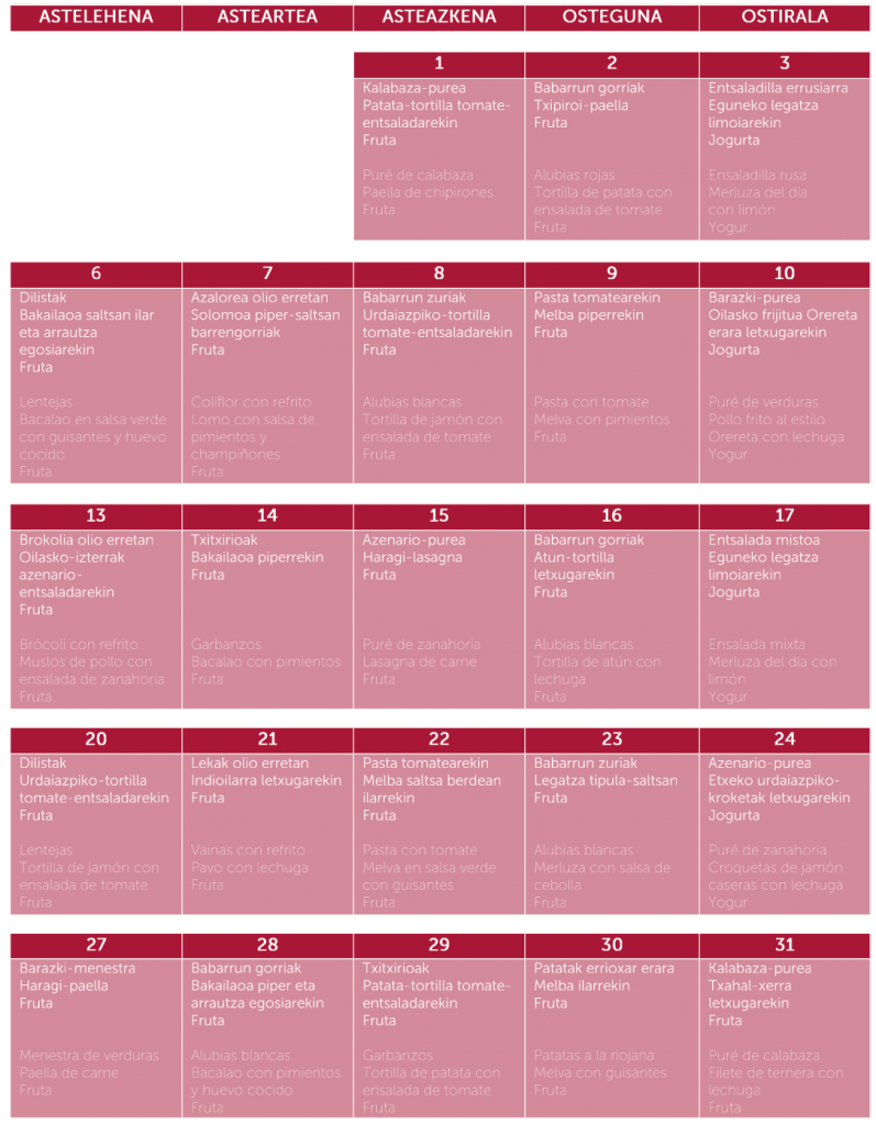 * Haur Eskola: 70€/mes (HH0) | 100€/mes (HH1)Día suelto: 12,50€/comida