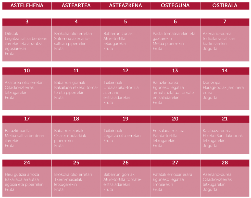• Nahitaezkoa da ikasleek plater bakoitzeko gutxieneko kantitatea jatea. Haur Hezkuntzako ikasleekin eta ikasle berriekin malgutasunez jokatuko da.